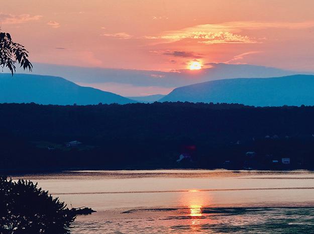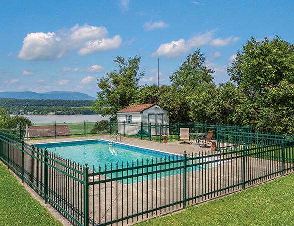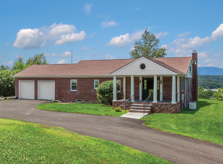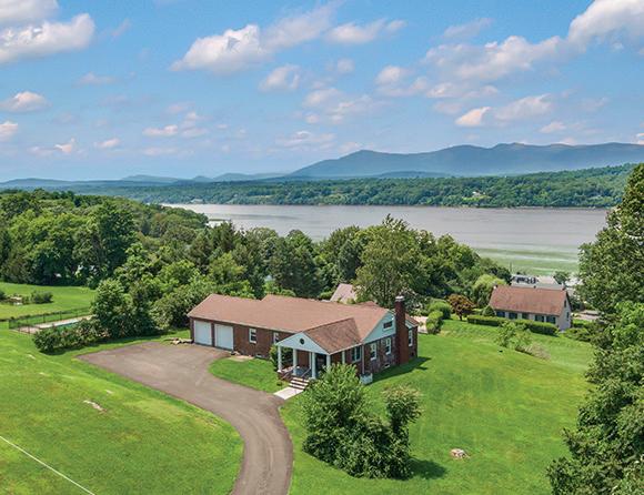 Germantown ranch with Hudson River & Catskill Mountain views. Located on a quiet dead-end road, this three-four bedroom/ three bath home features an open living/dining room which takes full advantage of the wonderful views, cathedral ceiling and working fireplace, kitchen with informal dining area, sunroom, lower level with recreation room, den/o ce and bath, attached heated garage, central air conditioning, hardwood oors, stained glass windows, and whole house generator. In ground pool. Desirable residential area.