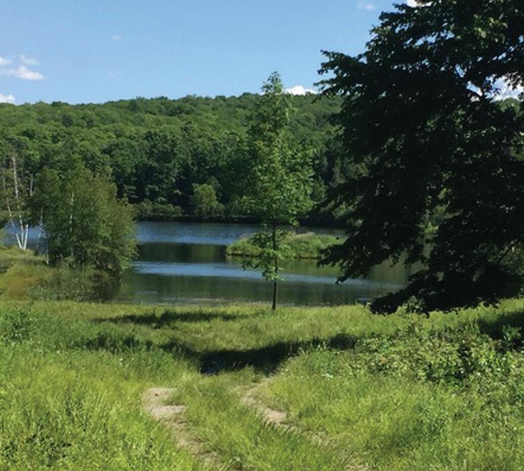 bordering waterfall to sit and enjoy. Potential views of both the Berkshire and Catskill Mountains.