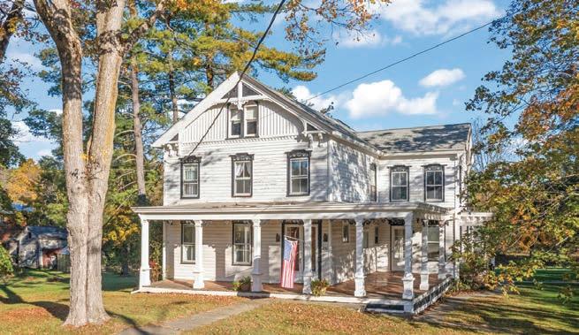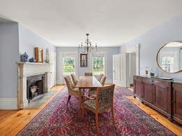 1836 Federal-Style Farmhouse This beautifully renovated farmhouse is rich with history. Set on over four acres with Willow Brook meandering through, this property offers a peaceful, storied setting with modern comfort throughout. Original wide board floors, exposed hardwood beams, and intricate molding and trim work highlight the home’s craftsmanship. The center hall layout leads to a stunning double parlor with two fireplaces and original pocket doors, as well as an open dining and living room boasting two additional fireplaces. The kitchen features a wood-burning fireplace, gas stove, island, walk-in pantry, and laundry room. Upstairs, you’ll find 3 bedrooms and 3 full bathrooms, as well as a room that could be used as a 4th bedroom. The exterior boasts classic clapboard siding, metal roof, original 6-over-6 windows, raised garden beds, a fenced backyard, and several vintage outbuildings.