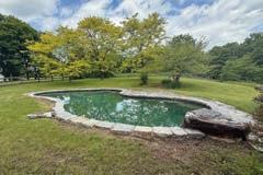 Upstairs, the primary suite offers a private bath, accompanied by three additional bedrooms and a hallway full bath, providing comfortable accommodations for family or guests. Outdoor living is equally impressive. A 16’ x 32’ in-ground pool is perfect for summer enjoyment. The picturesque pond, about ⅓ acre, is fed by a nearby stream, adding a tranquil view from the home and yard. There are walking trails throughout the property. Outbuildings include a large barn, as well as a barn/shed behind the house.
