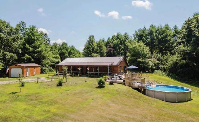 This 4 BR, 2.5 BA, 2,225± sq. ft. home is sited on 12+ acres. The rocking chair porch welcomes you. Featured are original hardwood and parquet flooring with a traditional layout. The main level offers an eat-in kitchen, formal dining room, office, and great room. The great room includes a fireplace, large picture window overlooking the pond, wet bar, built-in cabinetry, and a half bath—a warm and inviting gathering space.