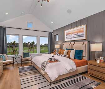 Typically, the models at Del Webb Oasis feature spacious master suites and mini suites with adjoining laundry rooms, plenty of convenient storage and open floorplans that have numerous versatile spaces. Recreational amenities in the community include sports courts, a fishing dock, community gardens and walking paths.