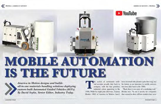 Tech is also driving innovations in warehousing operations. Senior Editor David Soyka profiles America in Motion, which designs and builds all-in-one materials handling solutions deploying custom-built Automated Guided Vehicles (AVGs). These mobile robots can carry payloads ranging from several pounds to several tons and navigate independently within a facility. Read more about it in Mobile Automation is the Future.