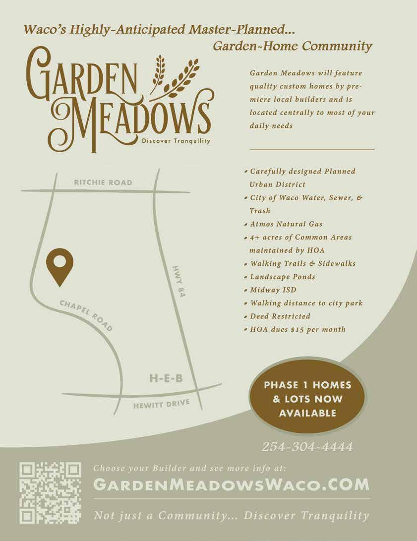 36 - Parade of Homes 2024 Hart & Associates Builders Harris Village AdditionRobinson, TX Highly Restricted Subdivision • Homes from $340,000s Visit our website: harrisvillagesub.com PURCHASE LOANS LOT LOANS CONSTRUCTION LOANS Let’s build the home of your dreams. From construction to permanent home loans, we make financing your dream home simple. Mortgage Consultant 254.761.2088 rnettles@extracobanks.com