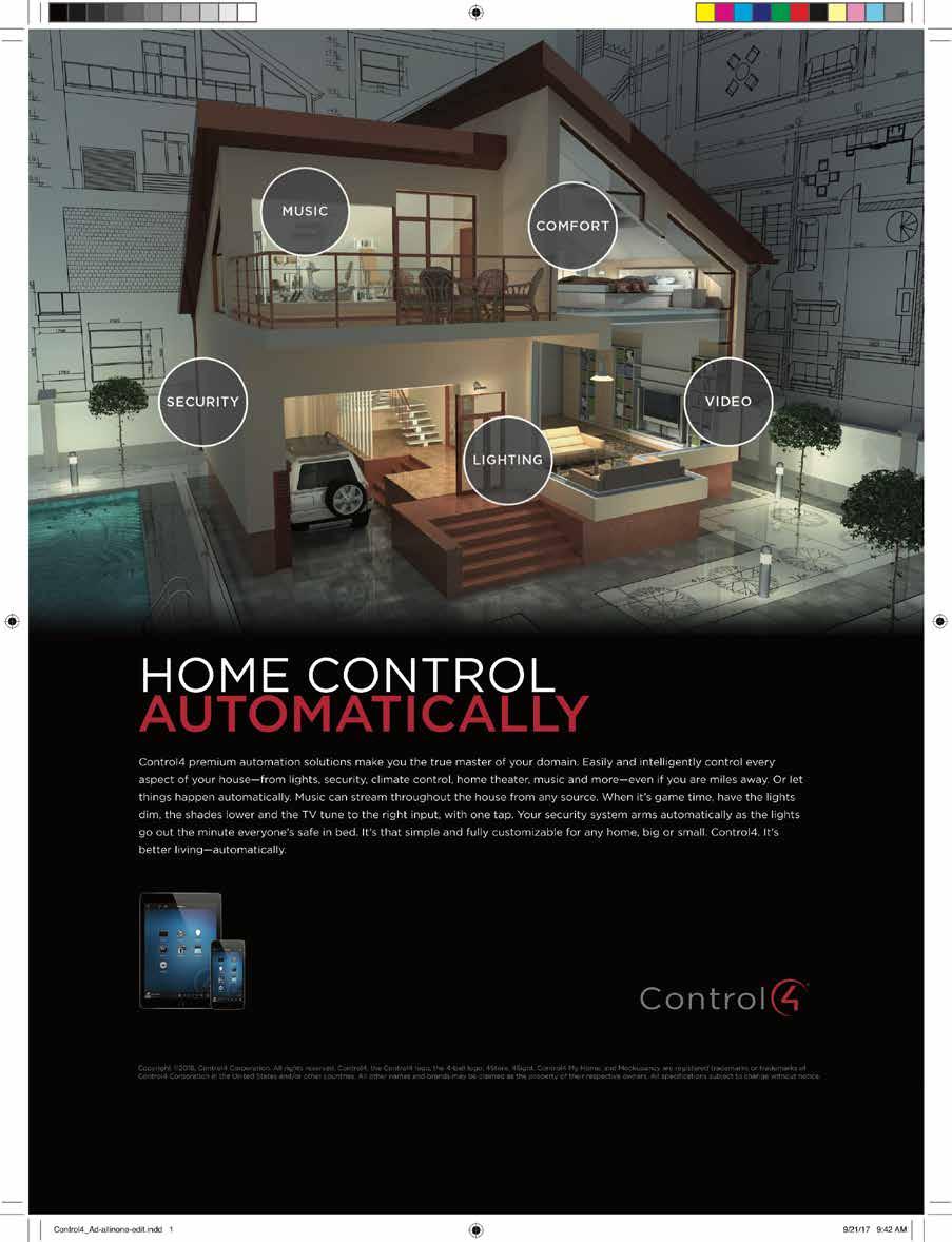 • Full media room equipment and speakers installed with Control 4 System allowing media audio/video throughout the home.