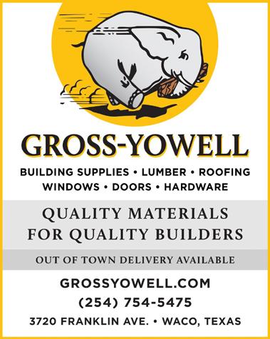 Please visit us at: www.tricountyguttering.com 254-848-RAIN(7246) 286 Lady Bird R. • Waco, TX 76712 • Fax 254-848-9334 34 - Parade of Homes 2024 Providing Your Glass Needs Since 1986 ROCKET GLASS & MIRROR, INC. 413 N. Robinson Dr. Waco, TX 76706 254-662-6523 www.rocketglass.com Tub Enclosures • Shower Doors • Mirrors Storefronts • Glass Replacement 6500 Horizon Circle, Waco, Texas 76712 | 254-399-6788 info@wiredupsmarthomes.com The Name You Can Trust.