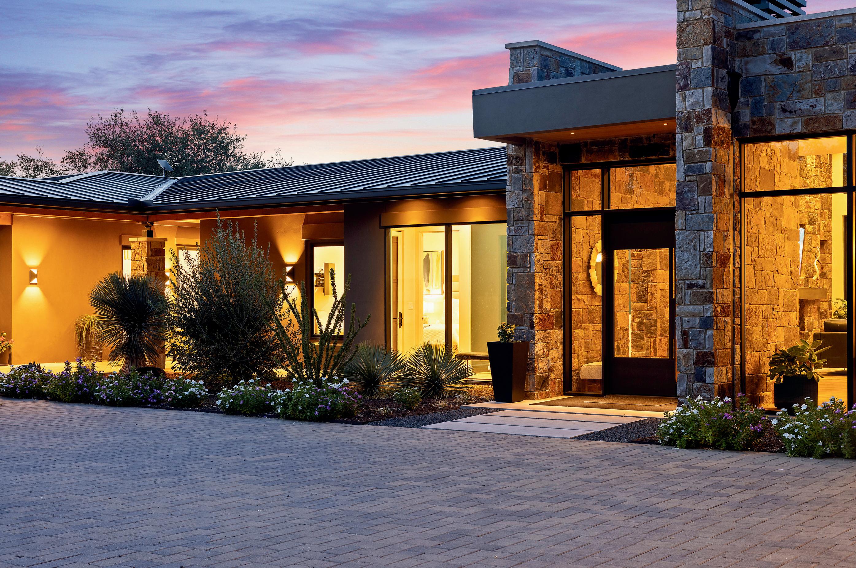 • Modern upgrades in the home include trimless interior doors and HVAC vents, custom metalwork trim details, an invisible cooktop, Sonos sound system inside and outside, and integrated landscape lighting.