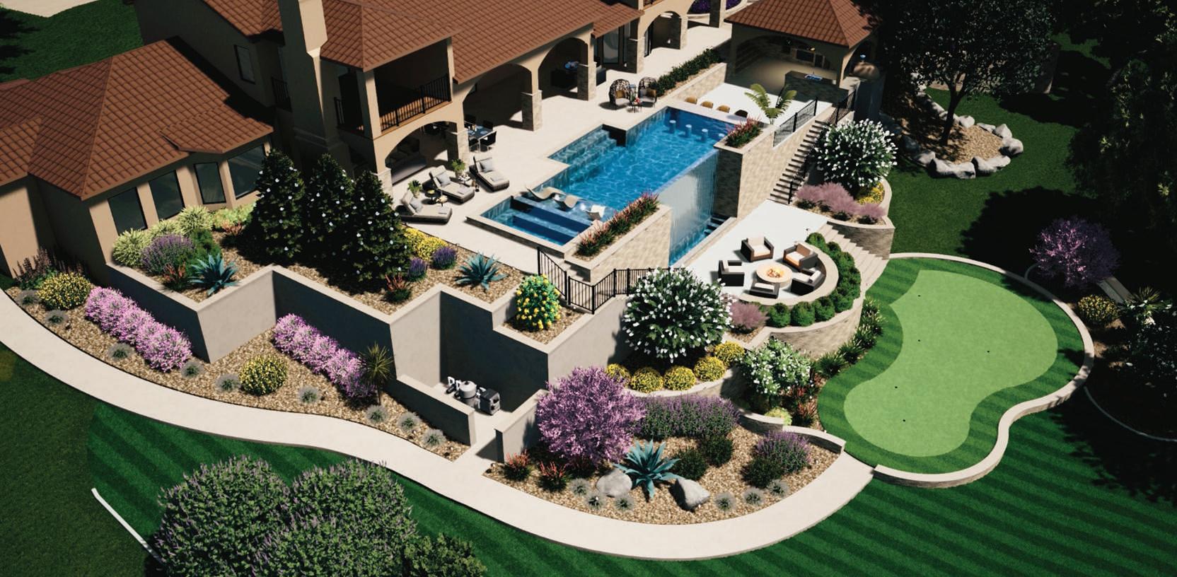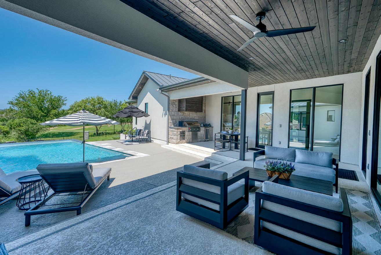 • Expansive outdoor living with luxury appliances and a resort-style pool.