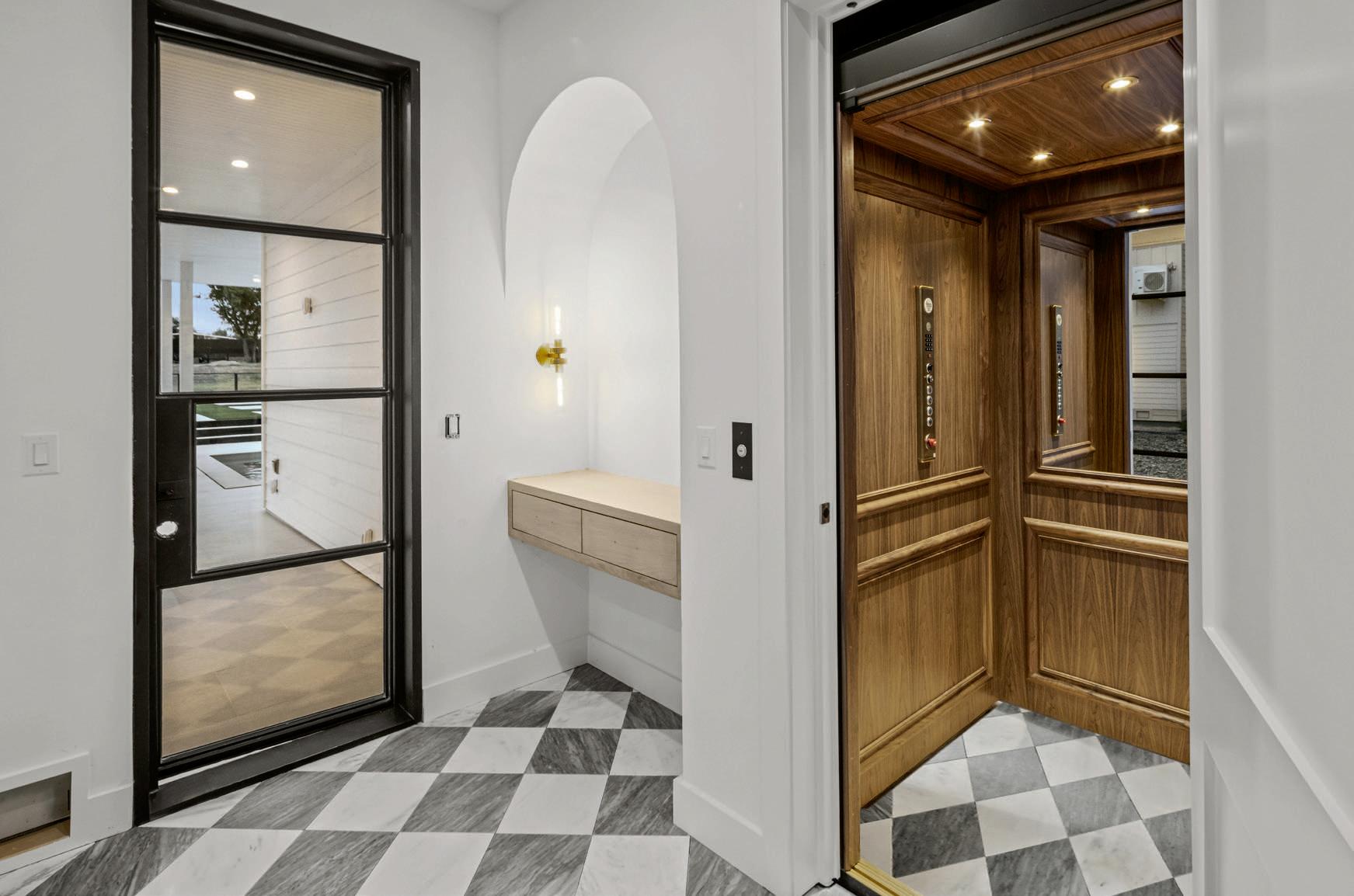 • The wood accent wall not only elevates the overall design but also introduces a tactile element that enhances the hallway’s atmosphere, making it both stylish and inviting.