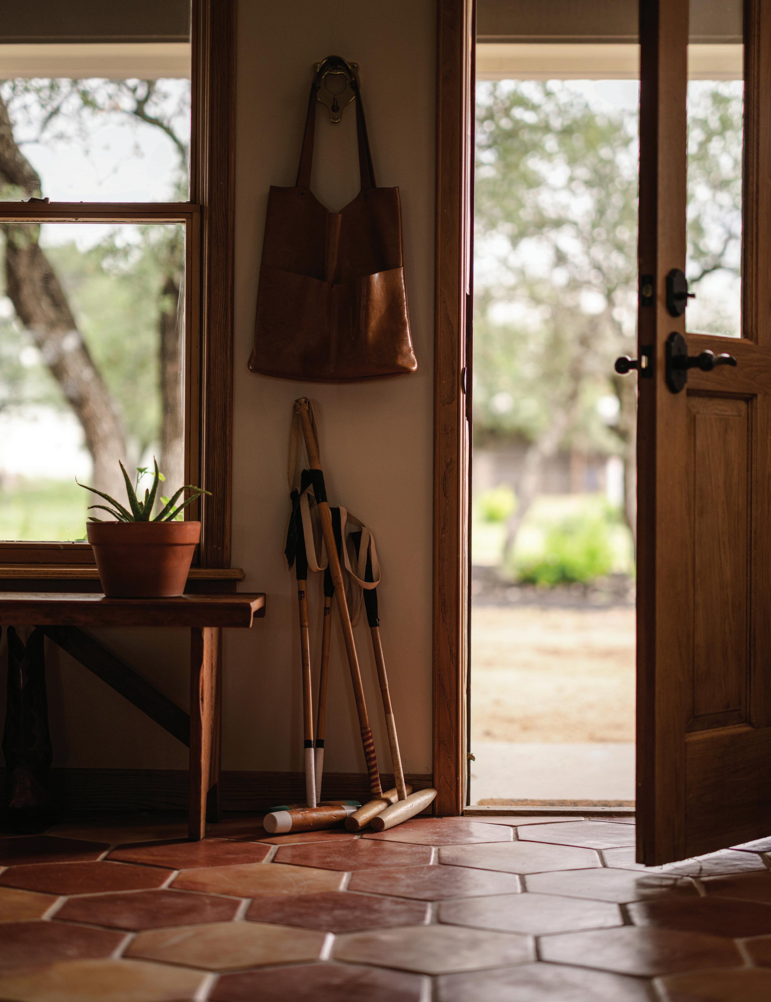• Hexagonal Saltillo tile replaced the square Saltillo and is now carried throughout the downstairs living spaces.
