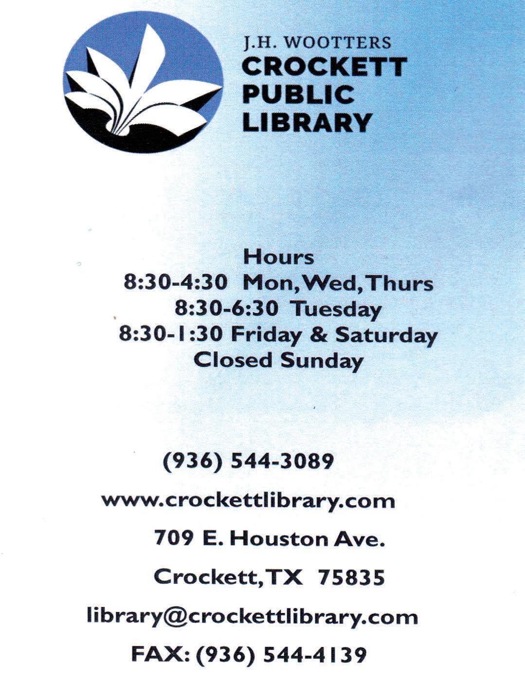 Hours: Mon. 11a-6p / Tue. 10a-8p / Wed. 10a-6p