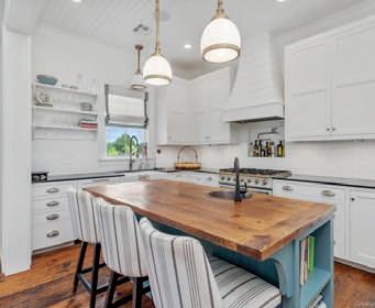 Corner lot in Walnut Grove, stylish custom home. Modern yet inviting, 3 outdoor spaces: front porch, side porch, private courtyard with firepit and kitchen. Foyer with shiplap walls, elegant staircase. Vaulted living, double-sided fireplace to dining near sophisticated kitchen. Stone countertops, butcher block island with sink. La Cornue gas stove, custom cabinetry, Thermador fridge, coffee bar. Cozy library/office with bookshelves. Master ensuite: bedroom with vaulted ceiling, chic bath, clawfoot tub, separate vanities, walk-in shower. Inspiring closet. 2 beds upstairs with baths, overlooking living. 4th bed upstairs at end of glassed loggia, private bath, kitchenette. Reclaimed floors, designer lighting, custom windows. Gas lanterns, landscaped lawn. MLS#SWL23004566 $1,175,000 www.hfguide.com/542639