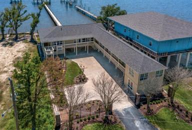 Old Settlement property at end of dead-end street with 90 feet of bulked water frontage. Main home renovated with attention to detail. Open floor plan with custom cabinetry and honed granite countertops, shiplap walls and ceilings. Kitchen has stainless-steel appliances with gas stove, marble backsplash and porcelain flooring. Two ensuite master bedrooms in main house. Separate wing with four suites, Jack & Jill baths with limestone countertops, and a game room with bar and mini fridge. All new plumbing, electrical, HVAC, elevator lift, and window treatments throughout. Five covered and two uncovered parking spaces below, screened in room for entertaining or future build out. Approximately 1000 square feet of open-air entertaining under main house, buried propane tank, gated driveway, privacy wall in parking area, landscaped with new sprinkler system, 370 foot long solar lit pier, two boat stalls with boat lifts, cleaning table with stainless steel sink, four fishing lights, approximately 567 square feet uncovered deck and approximately 1400 square feet covered deck. MLS#SWL22003682 $1,275,000 www.hfguide.com/592398