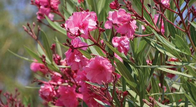 Oleander, Bougainvillea, Rosemary, Bermuda Grass, Desert Broom, Natal Plum, Ice Plant, Texas Sage, Olive, Mesquite, Saltbush, Afghan Pine, Lantana, Pyracantha, Bottlebrush, Yucca, most Acacia, and Palo Verde