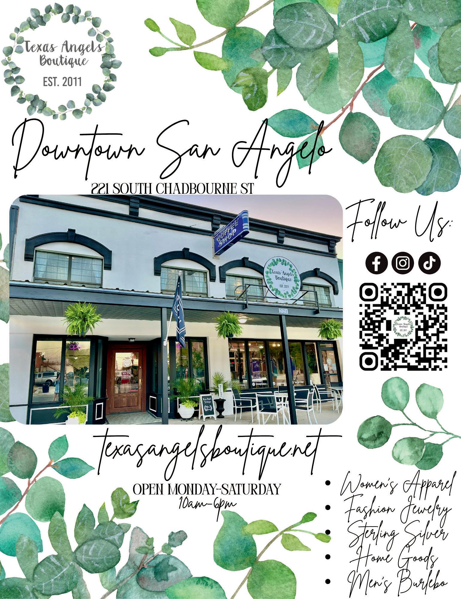 On this edition’s cover, you’ll see a vibrant snapshot of downtown San Angelo, right in front of the beloved Sassy Fox Boutique. For many years, Sassy Fox has been a local favorite, adding its unique charm and style to the heart of our town. As we honor the boutique’s legacy, we celebrate its role in making downtown San Angelo a more vibrant and welcoming place.