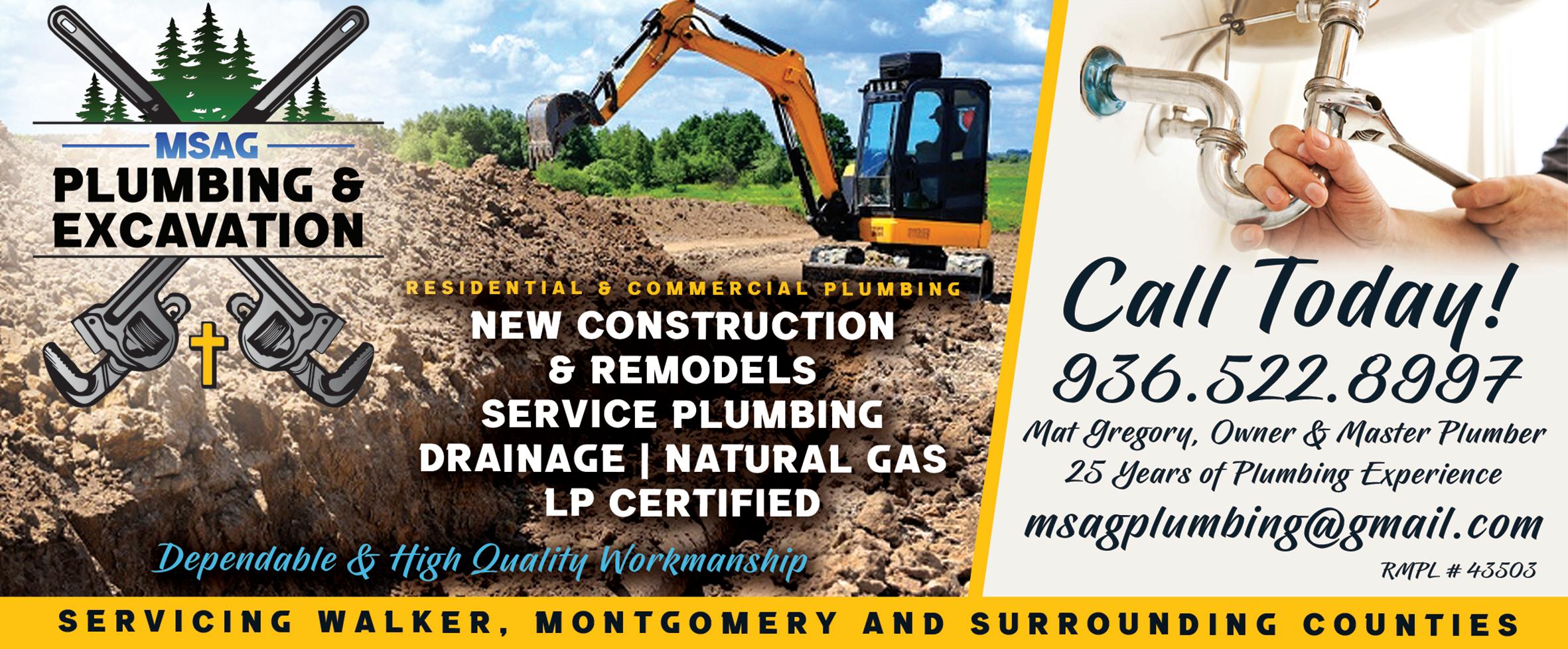 PLUMBING SERVICES MASTER LICENSE: RMP 39848 936-400-7004 CALL TODAY! New Construction Remodels Repairs Drain Cleaning 75 YEARS of Combined Experience! A NAME YOU CAN TRUST. SERVICE YOU CAN DEPEND ON. RESIDENTIAL & COMMERICAL Emergency Service Gas Lines Sewer Cameras Slab Leaks Sewer Line Repair Water Heaters Line Locating and MORE!