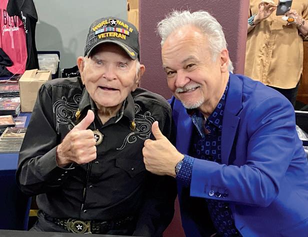 This year, a special guest was in the audience: Mr. Buck Sloan. Mr. Sloan, who served in World War II, is 99 years young and still quite the spry fellow. It is fairly rare in this day and time to meet someone who served in WWII; especially when you and that someone almost bump into each other in the aisle, and he asks you with a wink if you would like to dance. Laughing, we decided neither of us had the current coordination to “cut a rug” on a sloping theatre aisle! The icebreaker of our moment allowed me the opportunity to visit with him (and his friends) several times throughout the evening – long enough to see the amazement in his eyes as he told me he could not believe he had been specially introduced, or that all these people applauded for him.