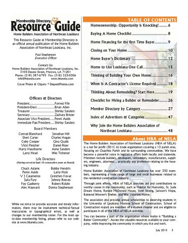 Checklist for Hiring a Builder or Remodeler....... 26 Member Directory by Category....................... 27 Index of Advertisers & Categories ................... 47 Why Join the Home Builders Association of Northeast Louisiana .............................. 48