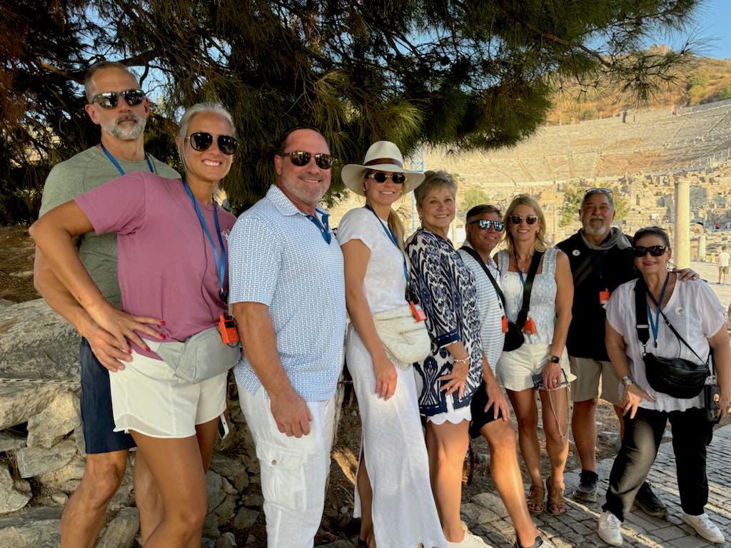 In Kusadasi, the group joined the sightseeing crowd at Ephesus. They strolled marble avenues toward the Library of Celsus and clustered on the Great Theatre’s worn steps, imagining ancient performances. Some members even hurried up to the House of the Virgin Mary on Mount Koressos, while some paused at the Basilica of St. John, soaking in its solemn beauty. They shared selfies and impromptu family portraits brought personal warmth to those storied ruins.