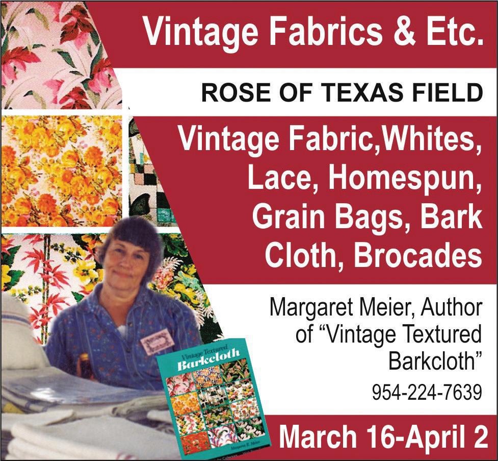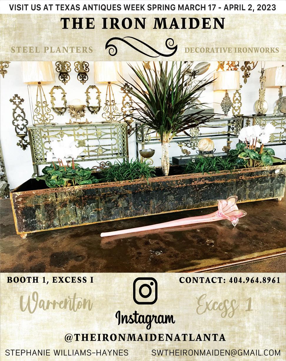 Here’s how: First, as you look through Show Daily, understand that the magazine is color-coded into sections by towns. This will help you get around. The green bars at the top and bottom of the page indicate that the dealers listed here can be found in Warrenton. Red bars represent Round Top dealers, purple for Carmine, Burton, Brenham, and Giddings, and La Grange, Flatonia, Schulenburg Fayetteville, and Smithville are yellow. After years of publishing, it is pretty safe