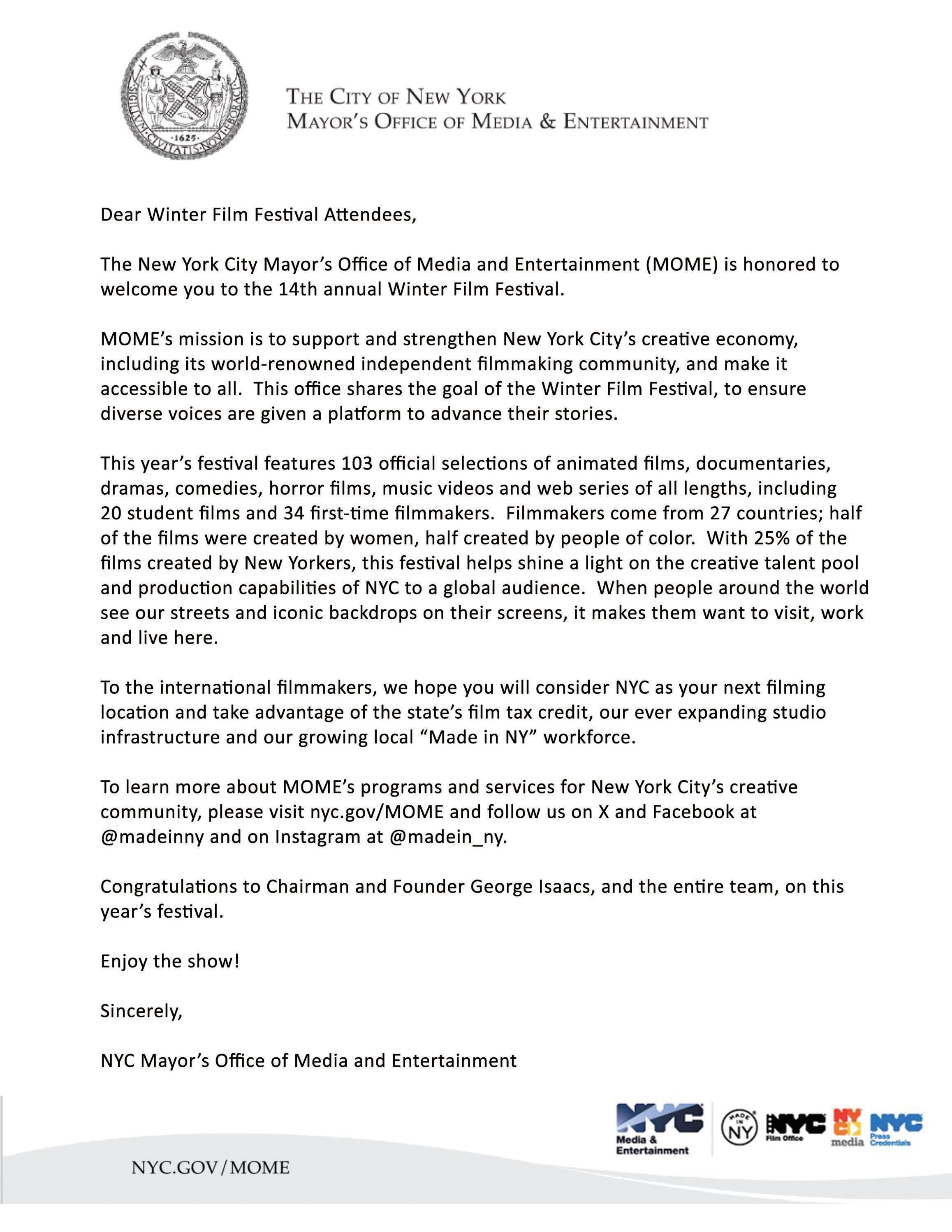 Winter Film Festival Is New York City. Like the city itself, we showcase the eclectic diversity and excitement of the independent arts world.