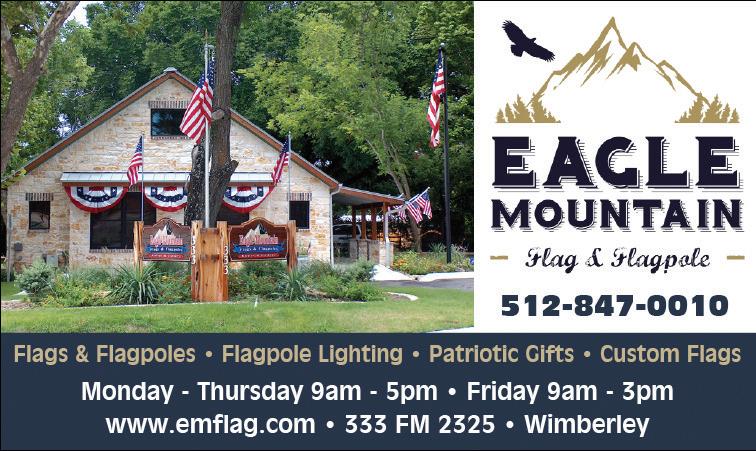 MONTHLY TO ALL STREET ADDRESSES SERVICED BY THE WIMBERLEY POST OFFICE IN 78676. ENTIRE CONTENTS COPYRIGHT ©2024. REPRODUCTION OF ANY OF THIS PUBLICATION REQUIRES WRITTEN PERMISSION OF PUBLISHER. WE ARE NOT RESPONSIBLE FOR THE PRODUCTS AND SERVICES ADVERTISED OR THE VIEWS CONTAINED IN THIS PUBLICATION.