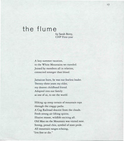 A lazy summer vacation, to the White Mountains we traveled. Joined by members all in relation, connected stronger than blood. Jamaican born, he was our fearless leader. Twenty-three years my elder, my dearest childhood friend. Adopted into our family as one of us, to see the world. Hiking up steep terrain of mountain tops through the craggy paths. A Cog Railroad descent from the clouds. Fresh strong air lifting spirits. Illusive moose, wildlife exciting all. Old Man on the Mountain was visited next. Strong, proud chin, symbol of state pride. All mountain ranges echoing, "live free or die."