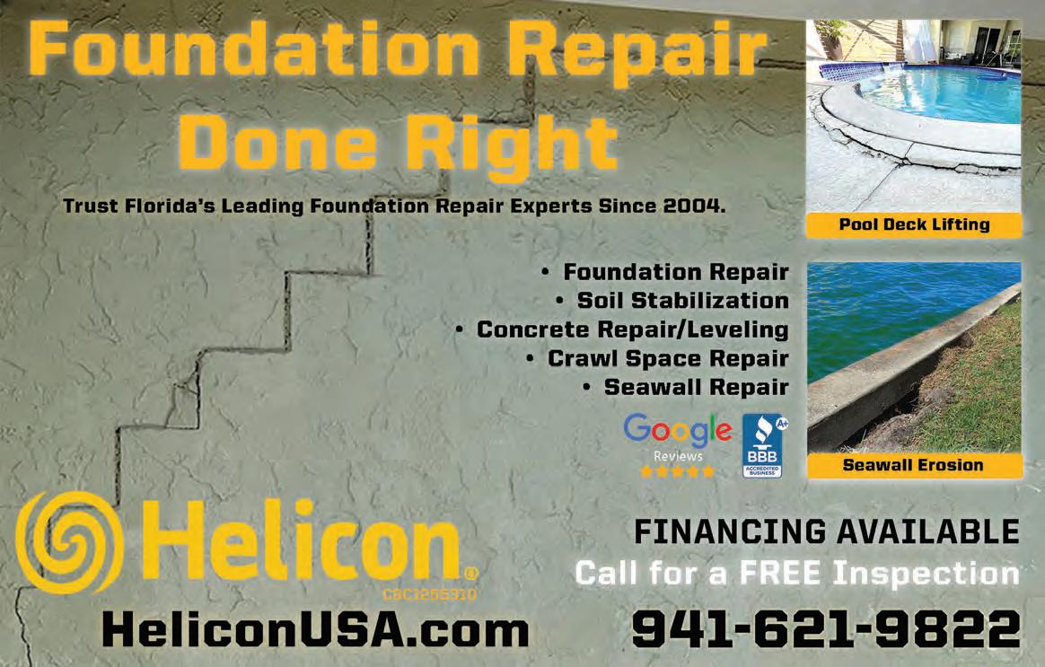 THE HOME MAG - JUNE 2024 SHOWCASING THE BEST HOME IMPROVEMENT COMPANIES 65 BECAUSE YOUR FOUNDATION IS CRACKED. LIMITED TIME OFFER $500 OFF* GET A FREE INSPECTION *Ten percent off any job over $2500 up to a max of $500. Coupon must be presented at time of inspection. Offer may not be combined with any other offer. Limit one per customer. Ask inspector for further details. Promo valid through 06/30/2024. 941-841-1494 FOUNDATION REPAIR CRAWL SPACE REPAIR CONCRETE LIFTING HIC#CBC1257350 P ull-out shelves not only offer both organization and ease of access, but will actually increase the amount of storage space in your cabinets. Whether it be a blind corner that is almost impossible to reach or a cluttered pantry, we have the right solutions for your storage needs. Would you like more room in your kitchen? Do you want to get it organized? LOCALLY OWNED & OPERATED 4173 Lanai Drive, Sarasota, FL 34241 941-812-0563 Not valid with other offers or prior purchases. Exp. 07/15/24 $200 OFF your order of 6 or more pull-outs Experience the Comfort of PULL OUT SHELVES FREE in Home Design Consultation! • Driveways • Pool Decks • Patios • Walkways • Retaining Walls • Pressure Washing Houses & Pool Cages • Concrete Staining • Epoxy Floors • Paver Install - Leveling Repair • Pool Remodeling • Window Cleaning $150 VALU E DIS COUNT WIT H A DRIV EWAY & POO L DE CK (pressure washing / sealing) • SARASOTA 17 YEAR S Experience • MANATE E • TAMPA BAY Hire a P av er S ealing Ex pe rt! Have your job done THE RIGHT WAY! 941-565-5002 SevenStars-PaverCleanSeal.com sevenstarscleanseal@gmail.com • Sealing • Leveling Repair • Pavers Installation • Pool Remodeling