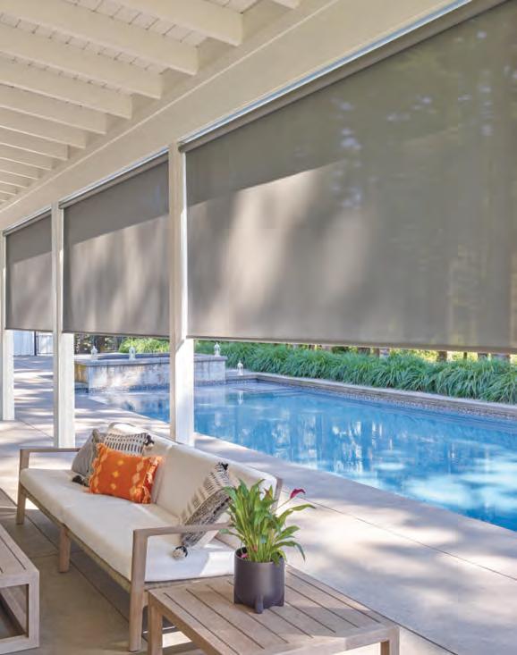 Beat the heat, but still keep your view. Block 75% to 99% of the heat and UV rays. Sunscreen shades o er privacy and style. Available in 100’s of patterns, designs and colors. Free Installation and Free Estimates.