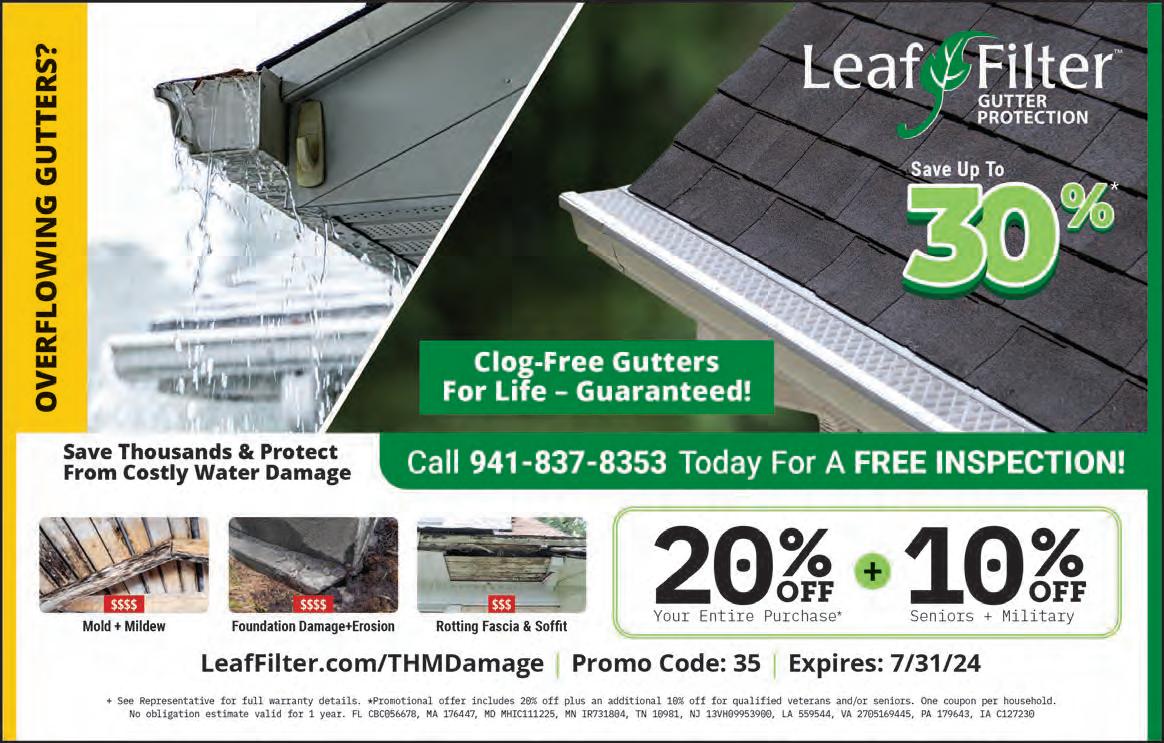 20 THE HOME MAG - JUNE 2024 SHOWCASING THE BEST HOME IMPROVEMENT COMPANIES 6261 Tower Lane, Sarasota I M PACT WI ND OWS & D OO R S www.StormProtectionPros.com 941-227- 43 23 License No: SCC131152686 Approved Contractor • Hurricane Windows • Sliding Glass Doors • Entry Doors • Bi-Fold Windows & Doors • Repair/Service FULL HOUSE IMPACT REPLACEMENT WINDOWS Installed - Limited Lifetime Warranty As low as $7950 LIFETIME GLASS BREAKAGE WARRANTY (*select windows) Our Services Tree Removal Stump Grinding Landscape Installation Why Choose Us Locally Owned & Operated. Licensed & Insured Tree Service Fast. Friendly. Affor dable 941-216-1760 yo derst r eeand l ands c api ng.com FREE ESTIMATES! PROTECT YOUR PROPERTY PROTECT YOUR PROPERTY from Water Damage from Water Damage 941-724-3643 ON-SITE SEAMLESS GUTTER MANUFACTURING FREE ESTIMATES FULLY INSURED 941-780-4707 • SEAMLESS GUTTERS • COPPER GUTTERS • HALF ROUND GUTTERS • COMMERCIAL GUTTERS • LEAF GUARD • CLEANING & REPAIRS • RE-SCREENING • POOL CAGE PAINTING • POOL CAGE REFURBISHING •SEAMLESS •COPPER •HALF ROUND GUTTERS •COMMERCIAL •LEAF GUARD •CLEANING REPAIRS •RE-SCREENING •POOL •POOL