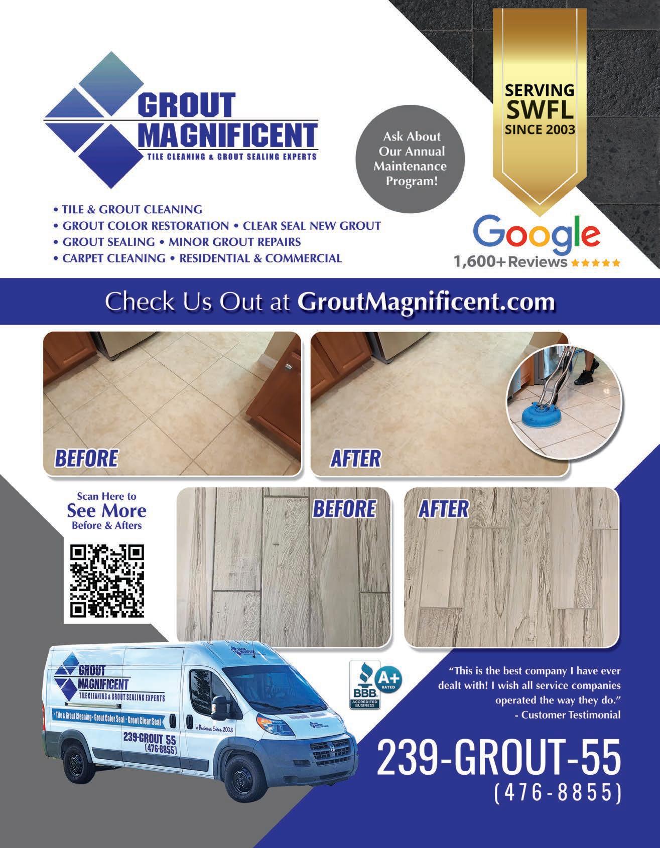 THE HOME MAG - May 2024 SHOWCASING THE BEST HOME IMPROVEMENT COMPANIES 45 ME MOR IA L DAY SAL UT E Lifetime Limited Warranty “Not only do we stand behind our windows... we stand on them!”® Locally Owned & Operated This Window World® franchise is independently owned and operated by GAIR Enterprises LLC d/b/a Window World of Ft. Myers under license from Window World Inc. Fully licensed & insured. License No. CGC1532450 Minimum 25% down required on all financing o ers. Previous sales are excluded and o ers cannot be combined. 1No interest if paid in full within 24 months with regular monthly payments. Minimum purchase amount of $10,000 required. Bank approval needed. Must qualify. Ask for details. 0524 • Impact Hurricane & HVHZ Rated Windows • WBDR & HVHZ Rated Entry Doors • Impact Patio Doors $1,000 SAVINGS WHEN YOU SPEND $10,000 OR MORE $2,000 SAVINGS WHEN YOU SPEND $20,000 OR MORE $3,000 SAVINGS WHEN YOU SPEND $30,000 OR MORE OROR INTERESTINTEREST 0% 24 MONTHS1 LIMITED TIME ONLY! CASHCASH 10% DISCOUNT HURRY! THIS OFFER EXPIRES 6/30/24 HURRY! THIS OFFER EXPIRES 6/30/24 HURRY! THIS OFFER EXPIRES 6/30/24 HURRY! THIS OFFER EXPIRES 6/30/24 WE PARTICIPATE! To see if you qualify, visit MySafeFLHome.com SLIDING GLASS DOORS DOORS WINDOWS 239-214-9279 WindowWorldFortMyers.com 5641 Division Drive, Fort Myers, FL 941-667-5969 WindowWorldSarasota.com 6915 15th Street East, Unit 212, Sarasota, FL SEE OUR COMPLETED PROJECTS