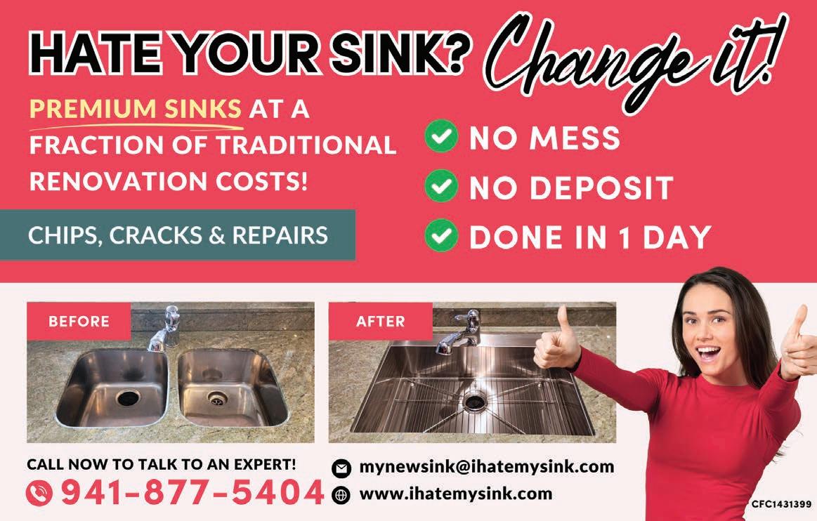 WE ALS O DO: • Granite & Quartz Countertops • Crown Moulding Southwest Florida’s Highest Rated Kitchen & Bath Company CopperleafCabinets.com REFACING, NEW CABINETRY & COUNTERTOPS *Call for details and restrictions. Exp 06/15/24 FREE Roll Outs & Crown Moulding 50% OFF WHOLE KITCHEN GRANITE *Call for details and restrictions. Exp 06/15/24 AMISH BUILT SOLID WOOD DOORS Licensed & Insured 941-929-6216 KIT LLC GET EXTRA 10% OFF In addition to any other discount. Exp. 06/15/24