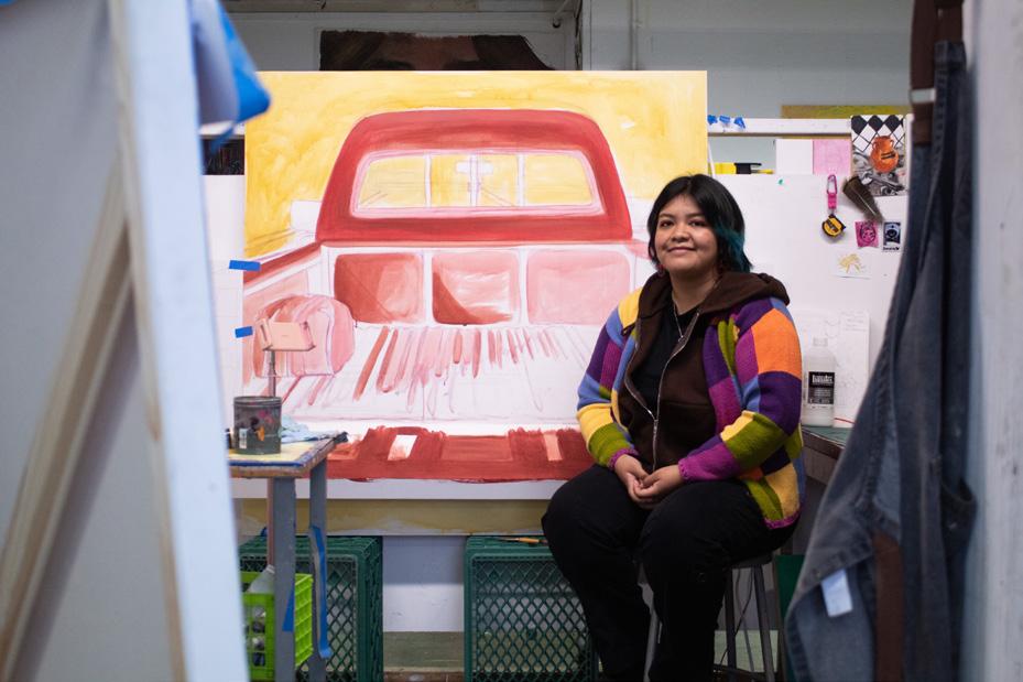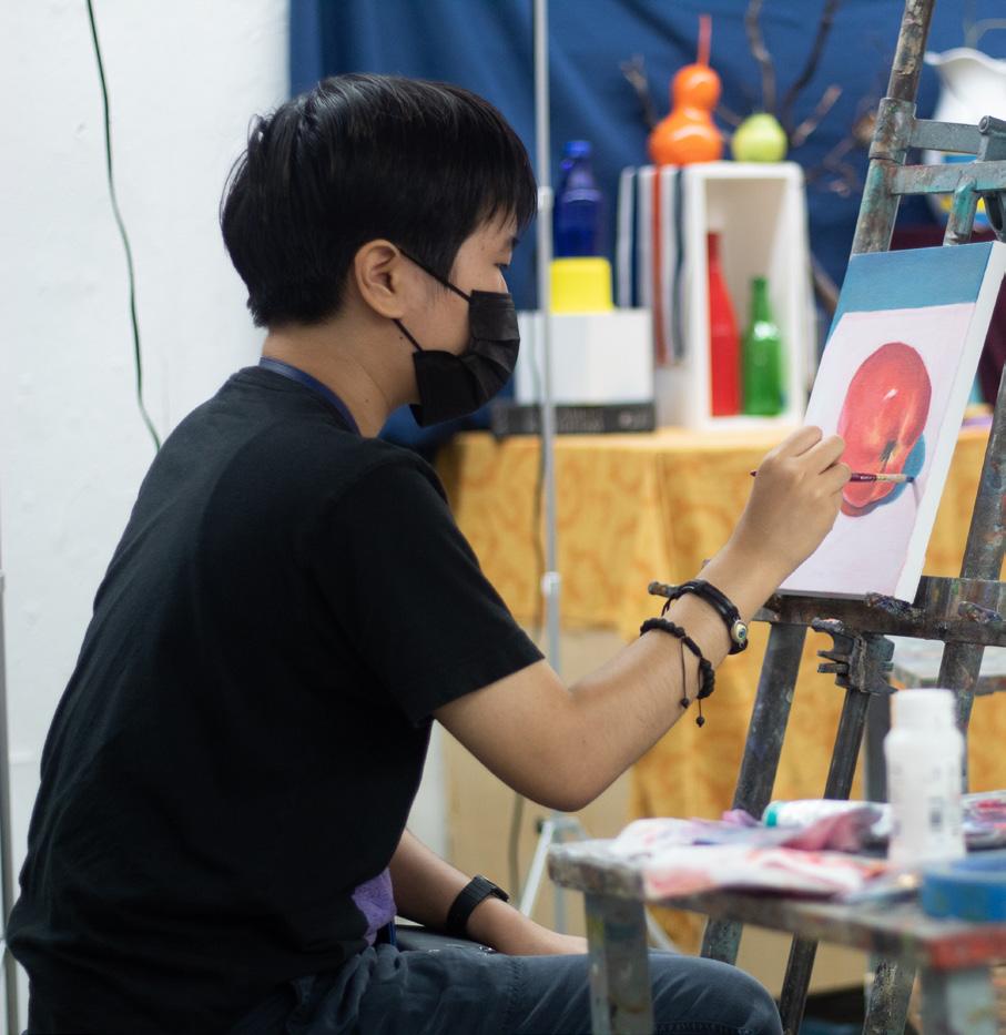 Jo Lin, a sophomore and pre-illustration major, is one of the fine arts students who use the studio space to create. The rooms have no central A/C and usually rely on box fans or window A/C units for cooling. Photo by Kelsey Brown.