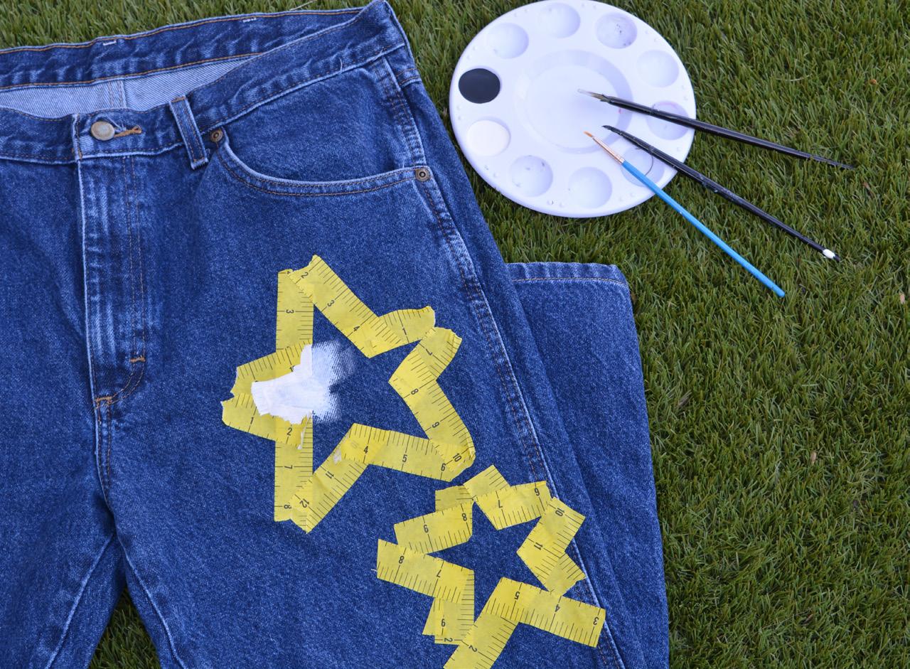 An easy thrift flip idea for anyone interested in beginning the process is painting a pair of denim jeans. Once you gather materials like acrylic paint, paint brushes, and masking tape, your jeans become a blank canvas for any design you can come up with yourself or through a quick Google or Pinterest search.