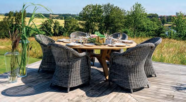 fåtöljer, fällbar rygg, pallar och bord, rundtrådig konstrotting i tre färgval.