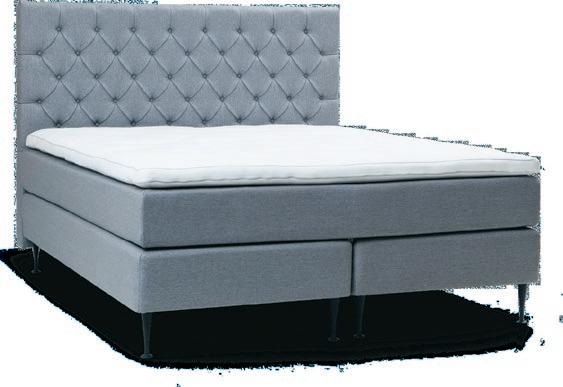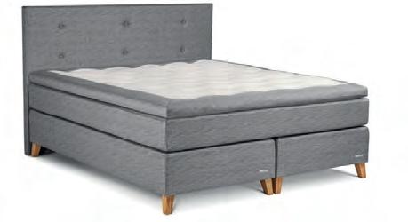 Kontinentalsäng 180x200 cm inkl. ben och bäddmadrass. 5-zon pocket. Djupknappad gavel ingår. Ljus grå klädsel. Tillverkad av Hilding.