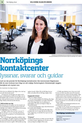 lyssnar, svarar och guidar I juli var det premiär för Norrköpings kontaktcenter. Den kommunala frågeslussen där du som invånare kan fråga om allt möjligt. Parkeringskort, förskoleavgift, bygglov, hemtjänst och mycket mer. Text: Annelie Sylvan Foto: Magnus Andersson