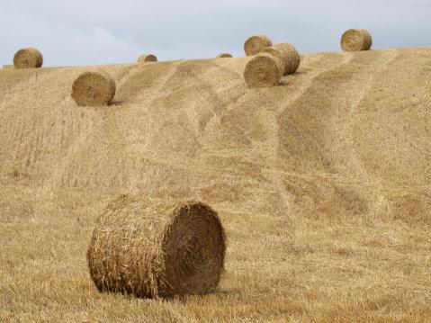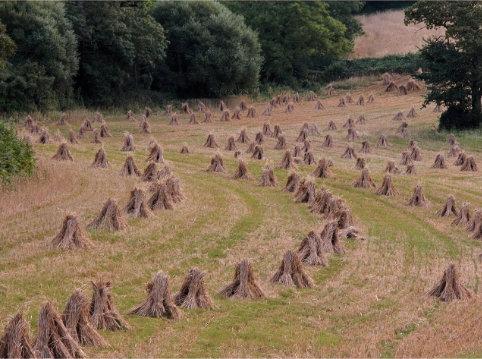 Foradayortwo,roundorrectangular strawbalesmaybeartfullyarrangedfor thephotographer,butbeforelong,they aresafelystackedinbarnsreadyforthe winter.