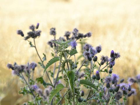 Theheadlandsandhedgesare,ifnot sprayedoff,richinwild�lowers(aka weeds),andmarginalpatchesof unproductivelypoorlandareoftenleft uncultivated,soonburgeoningina summerriotofdock,thistle,nettle, cloverandchamomile.