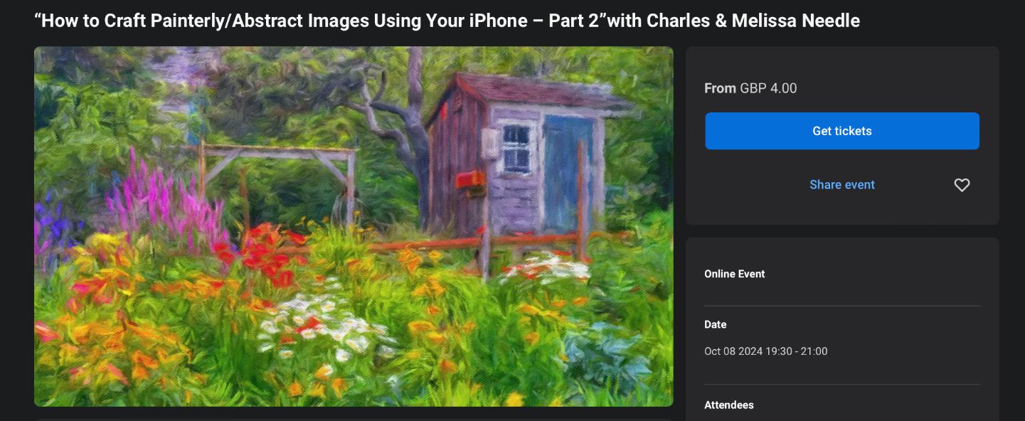 And you just few days left to secure a place for the live talk on Saturday featuring Rad Drew , ‘Creating Infrared images with your iPhone”