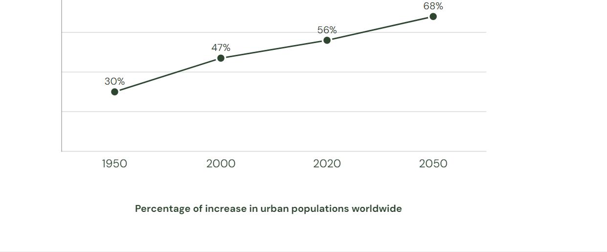 With rapid urbanization on the rise, many residential space inhabitants will, if they do not already, lack access to natural places. Indeed, with the current trajectory, the bulk of the population who live in big cities will spend the majority of their lives in developed urban settings. Globally, the world’s urban population in developed regions has increased from 55% in 1950 to 78% in 2011, and is expected to increase to a whopping 86% by 2050.