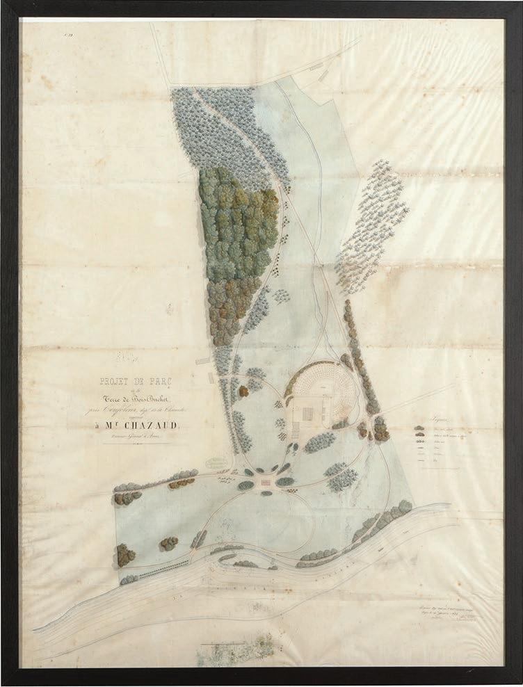 Plan of the Boisbuchet park, drawing on silk 1864