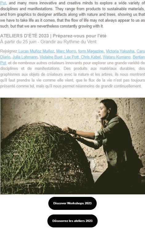 One of the first projects of the period involved creating collaterals to be used in advertisement and promotion of the 2023 Summer Workshop Program at Boisbuchet.