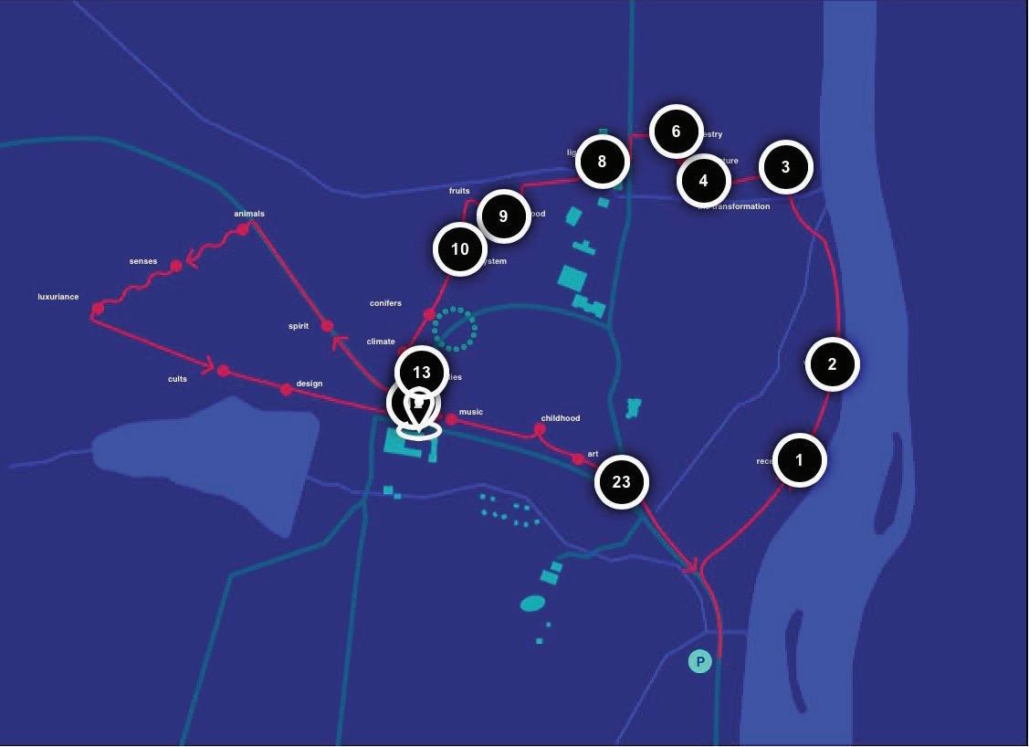 The initial launch of the route includes 12 stations that upon interaction through walking, offer information in the form of films and photos, writings and sounds, as well as links to other regional activities around the forest.