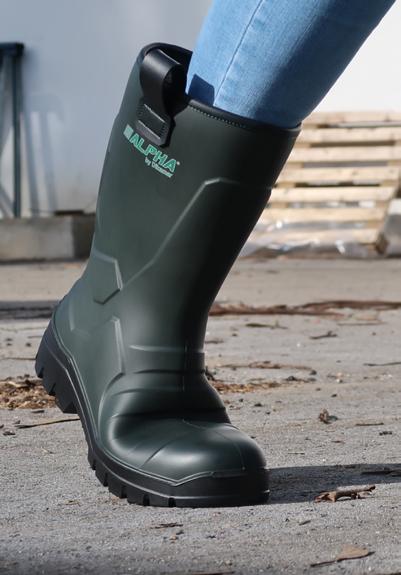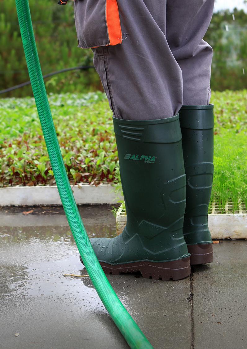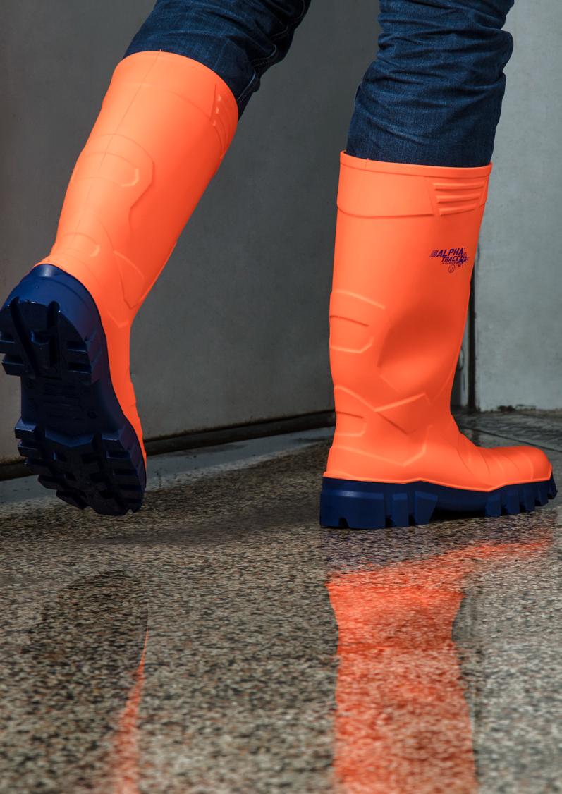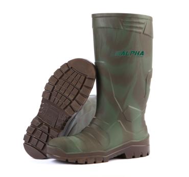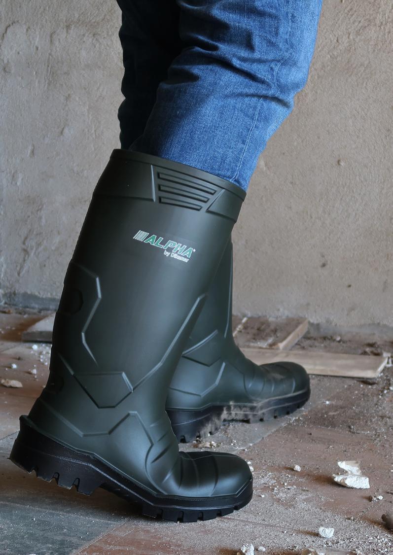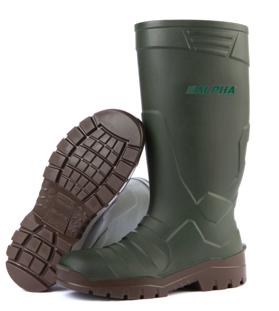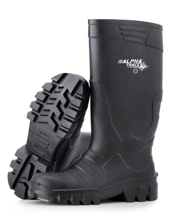 As botas Alpha® são produzidas em poliuretano flexível e de alta qualidade. Oferecem excelente aderência e isolamento térmico, mantendo os pés secos e à temperatura certa, proporcionando conforto e resistência mesmo em temperaturas extremas. Estas botas são mais confortáveis e mais leves do que as botas de PVC ou borracha, podendo durar até quatro vezes mais. Também oferecem grande resistência a óleos, gorduras, ácidos e solventes orgânicos. A sua sola antiderrapante e anti estática proporciona excelente aderência nas superfícies mais escorregadias.