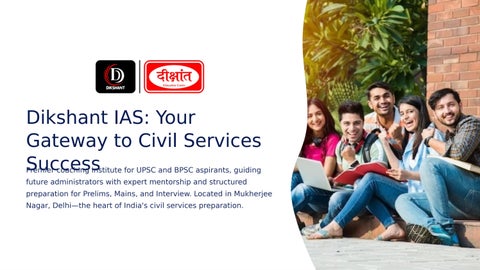 Dikshant IAS, founded in 2005 by Dr. S. S. Pandey, is a leading coaching institute for UPSC and State Civil Services based in Mukherjee Nagar, Delhi. With over two decades of experience and a proven record of hundreds of selections, we focus on providing structured, result‑oriented guidance for every stage of the exam – Prelims, Mains, Essay, and Interview. Our teaching approach combines small batch sizes, experienced faculty, and personalized mentorship to ensure individual attention. We offer flexible learning modes, including classroom, online, and hybrid courses, along with updated study material, comprehensive test series, and mock interviews to build exam confidence. At Dikshant IAS, our mission is to empower aspirants with quality education, a strong conceptual foundation, and practical strategies to achieve success. We also run scholarship programs to make learning accessible to deserving candidates. Driven by excellence and student‑focused guidance, we aim to shape dedicated future civil servants for the nation.