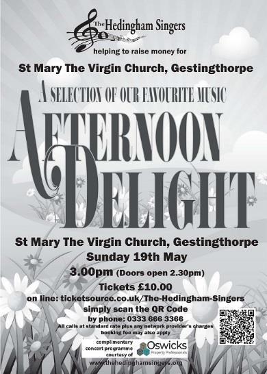 It is also that time of year when we have Gestingthorpe’s wonderful Wiggery Wood, open to us for the annual Bluebell Service, courtesy of Ashley Cooper, on 5th May at 3.00pm. We will give thanks for the glory of creation amidst the bluebells in a short Holy Communion service, everyone is most welcome.