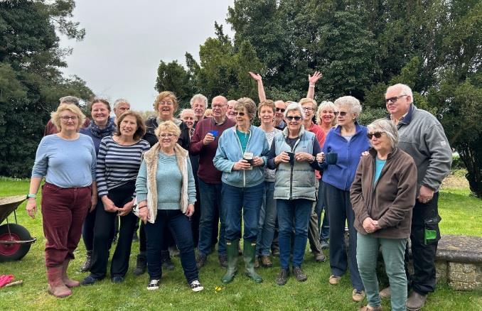 Fast forward to Saturday 6th April, when a great group of 25 villagers arrived to do our annual churchyard tidy. The morning started with the discovery of a swarm of bees, which was quickly cordoned off to ensure everyone was safe. After we finished the bees were safely removed in case it rained and they perished. The work has given us a new compost pile, which will eventually provide good quality compost.