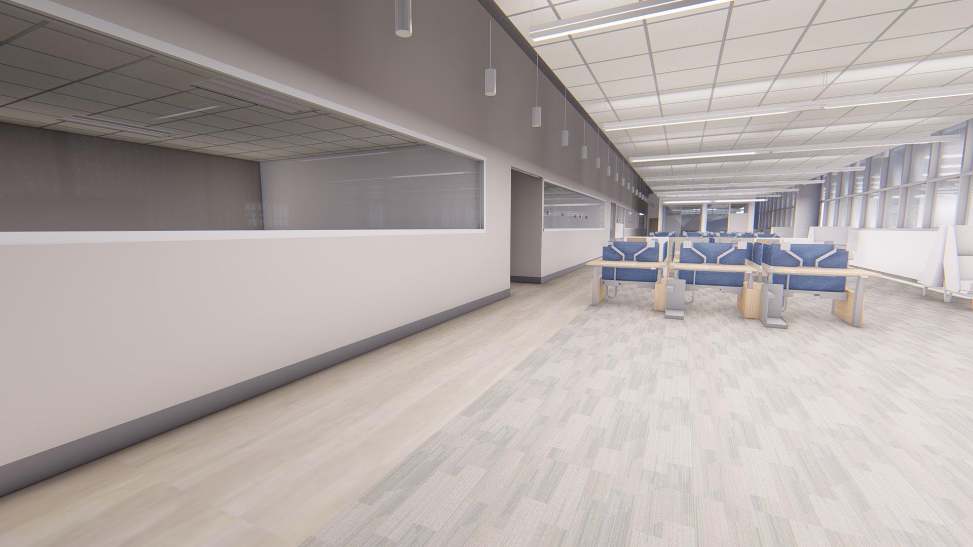 Design options were heavily explored for prototypical areas that were developed with project goals in mind. Denver requested that designs be extensively studied for ceiling and lighting options, furniture configurations, and finishes and materiality. Plans, diagrams, and 3D renderings were developed to illustrate the effects that each modification would make to a space. Based off of these designs, the client would be able to determine a holdroom type to use as the basis of design in upcoming phases of the project.
