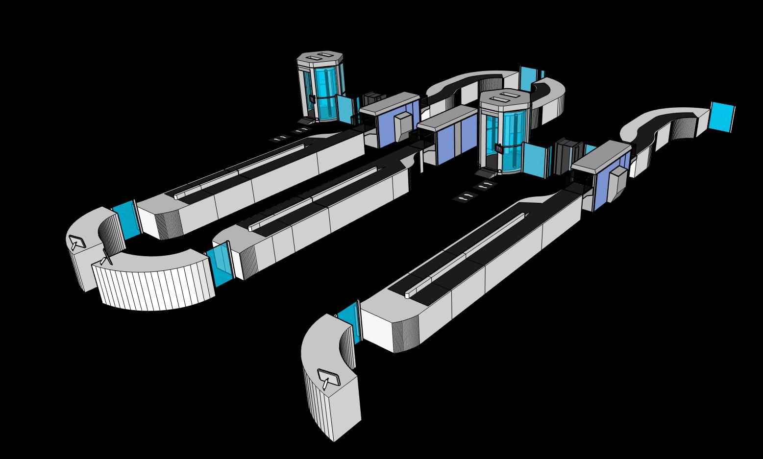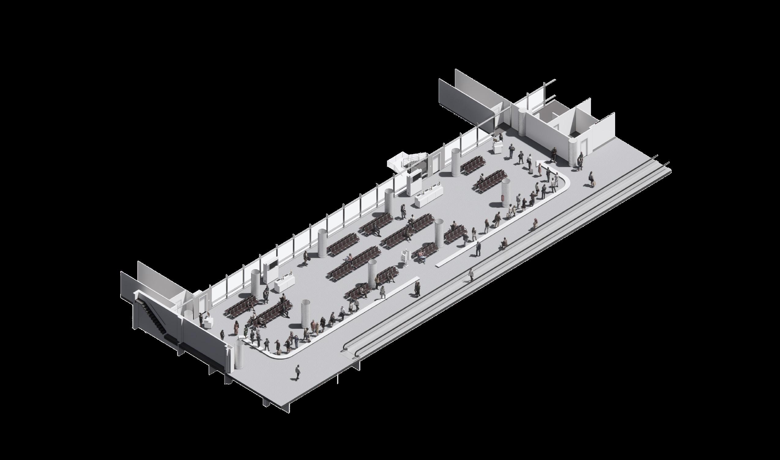 This process required research and design study in order to accurately convey the passenger experience through the checkpoint. Starting from a 2D blueprint, a series of models were created and rendered in order to showcase final presentation images to the client.